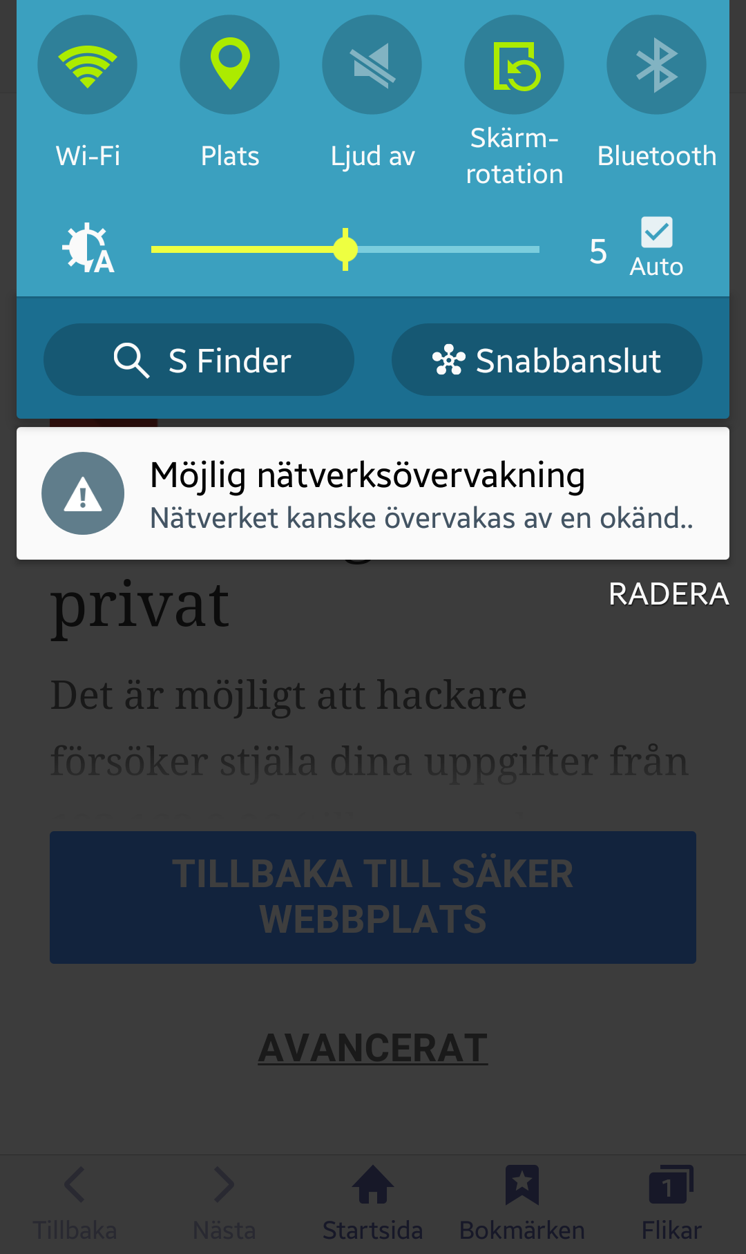 OBS! Vissa Androidenheter kräver att man aktiverar en säker skärmlåstyp (om detta inte redan finns) för att kunna gå vidare med installationen.