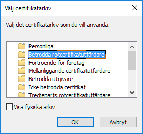 Välj arkivet Betrodda rotcertifikatutfärdare och klicka OK.