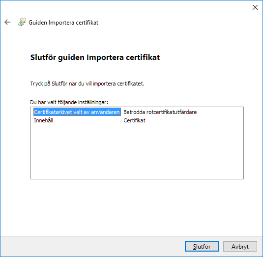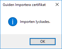 När certifikatet har installerats visas en bekräftelse.